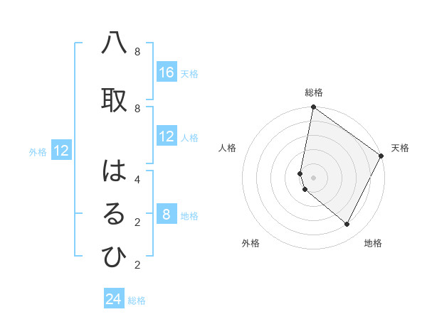 八取 はるひさんの天格は16画の5点!