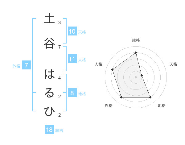 土谷 はるひさんを姓名の画数から五運を鑑定