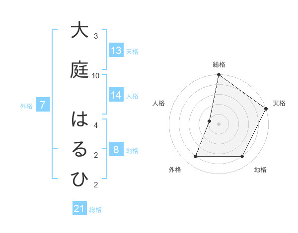 大庭 はるひさんを姓名の画数から五運を鑑定