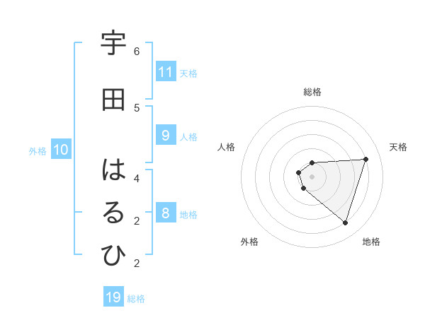 宇田 はるひさんを姓名の画数から五運を鑑定