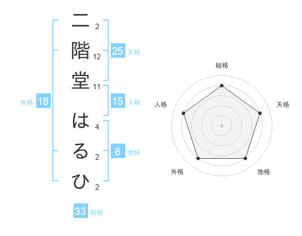 二階堂 はるひさんを姓名の画数から五運を鑑定