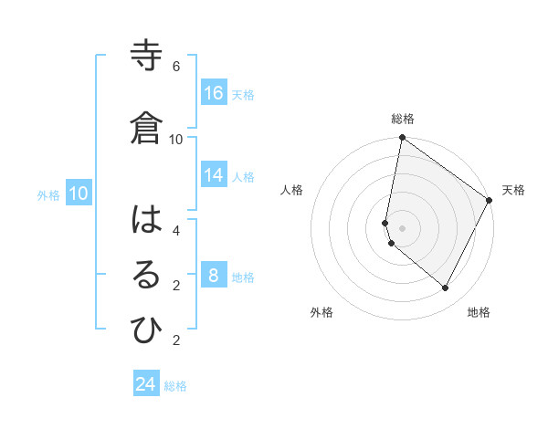 寺倉 はるひさんの天格は16画の5点!
