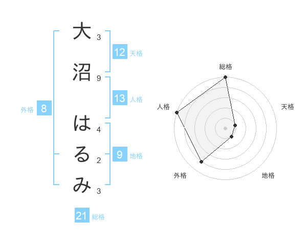 大沼 はるみさんを姓名の画数から五運を鑑定