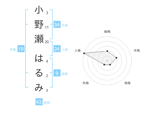 小野瀬 はるみさんを姓名の画数から五運を鑑定