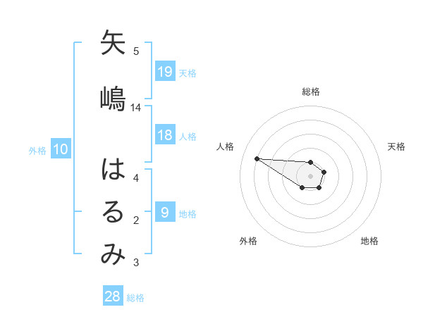 矢嶋 はるみさんを姓名の画数から五運を鑑定