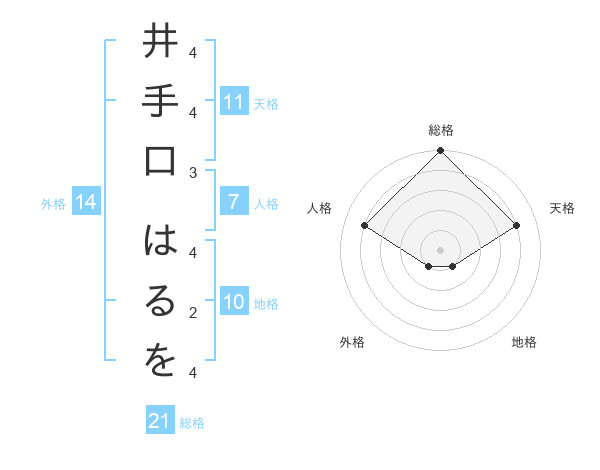 井手口 はるをさんの総格は21画の5点!