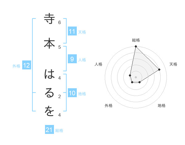 寺本 はるをさんの総格は21画の5点!