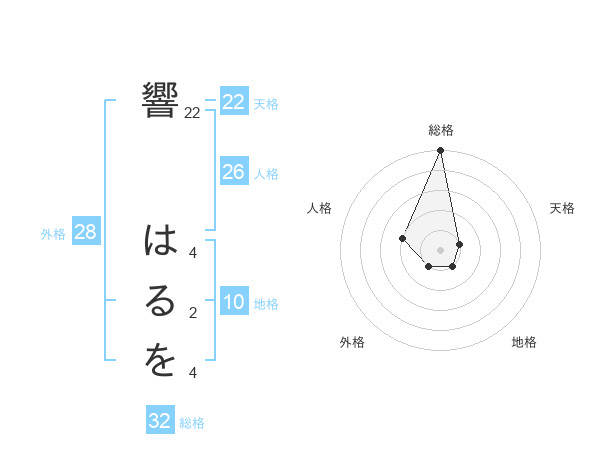 響 はるをさんの天格は22画の1点!