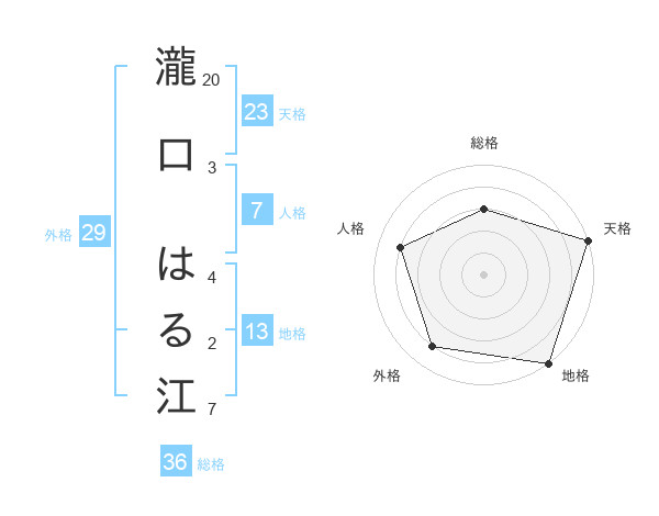 瀧口 はる江さんの天格は23画の5点!