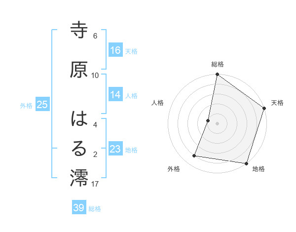 寺原 はる澪さんを姓名の画数から五運を鑑定