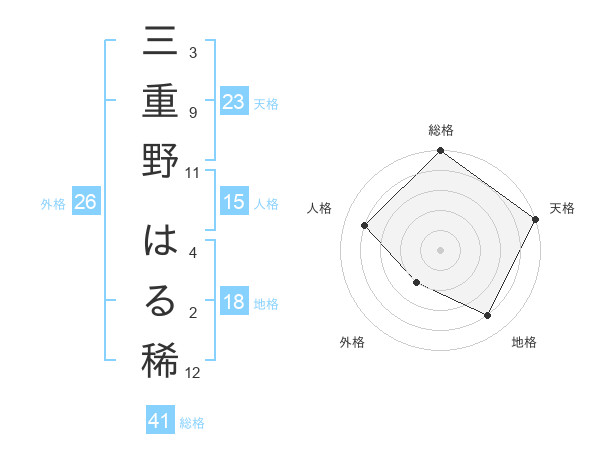 三重野 はる稀さんを姓名の画数から五運を鑑定