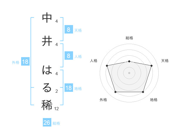 中井 はる稀さんの天格は8画の4点!