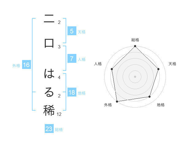 二口 はる稀さんの総格は23画の5点!