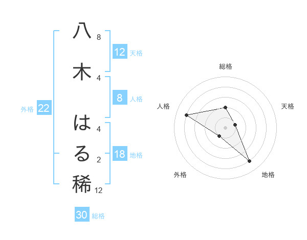 八木 はる稀さんを姓名の画数から五運を鑑定