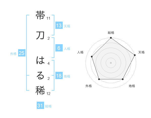 帯刀 はる稀さんの総格は31画の5点!