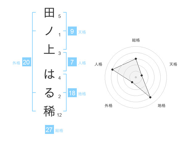 田ノ上 はる稀さんを姓名の画数から五運を鑑定