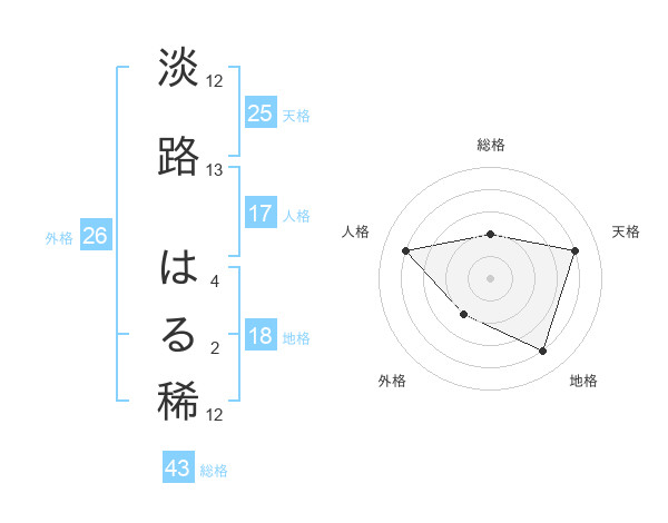 淡路 はる稀さんの総格は43画の2点!