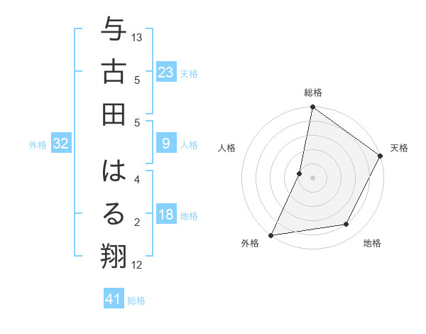 与古田 はる翔さんの外格は32画の5点!