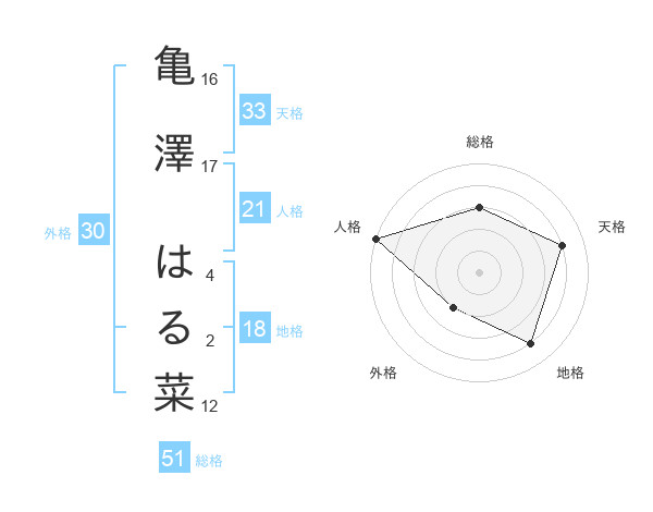 亀澤 はる菜さんの総格は51画の3点!