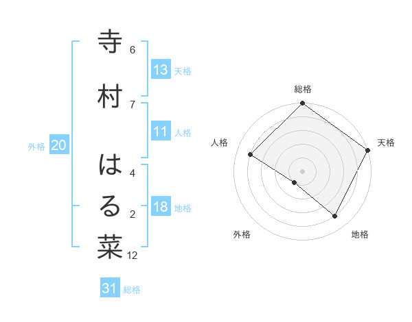 寺村 はる菜さんの天格は13画の5点!