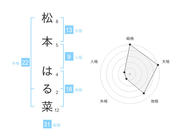 松本 はる菜さんを姓名の画数から五運を鑑定