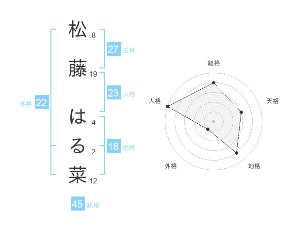 松藤 はる菜さんの総格は45画の4点!