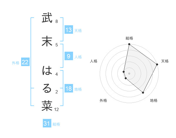 武末 はる菜さんの天格は13画の5点!