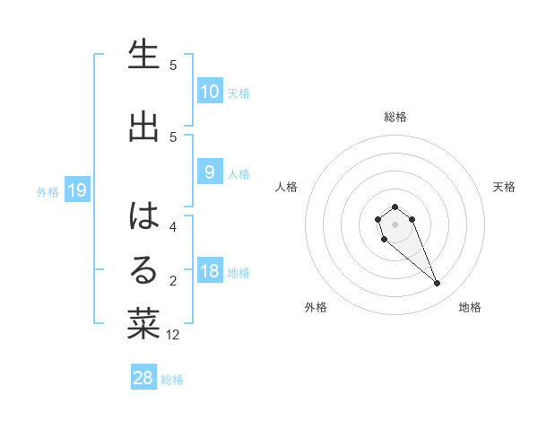 生出 はる菜さんの総格は28画の1点!