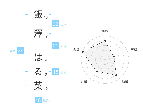 飯澤 はる菜さんの総格は48画の4点!