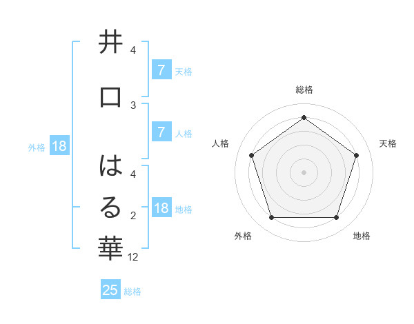 井口 はる華さんの総格は25画の4点!