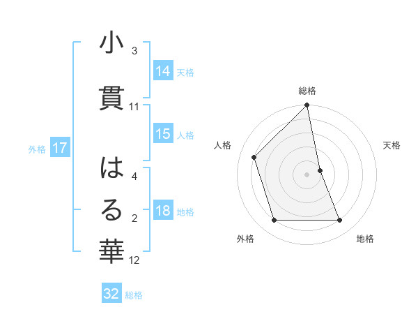 小貫 はる華さんを姓名の画数から五運を鑑定