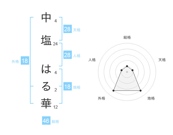 中塩 はる華さんの天格は28画の1点!