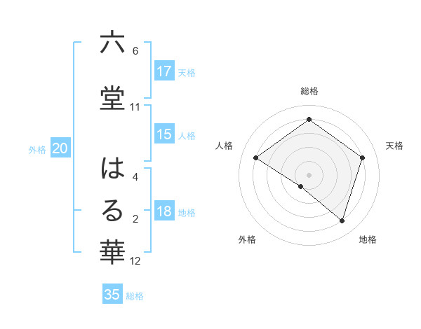六堂 はる華さんの外格は20画の1点!