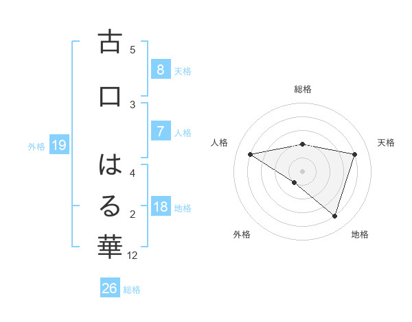 古口 はる華さんの天格は8画の4点!