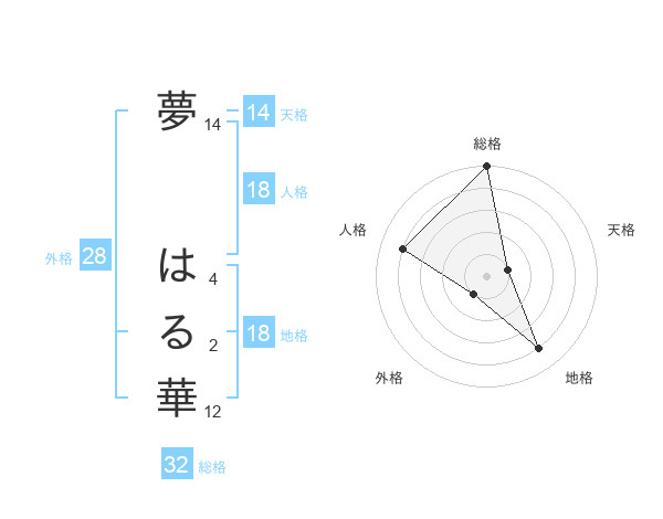 夢 はる華さんの総格は32画の5点!
