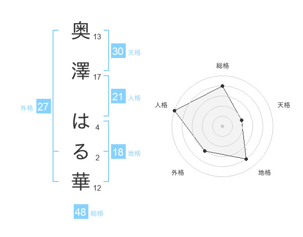 奥澤 はる華さんの天格は30画の2点!