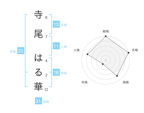 寺尾 はる華さんを姓名の画数から五運を鑑定