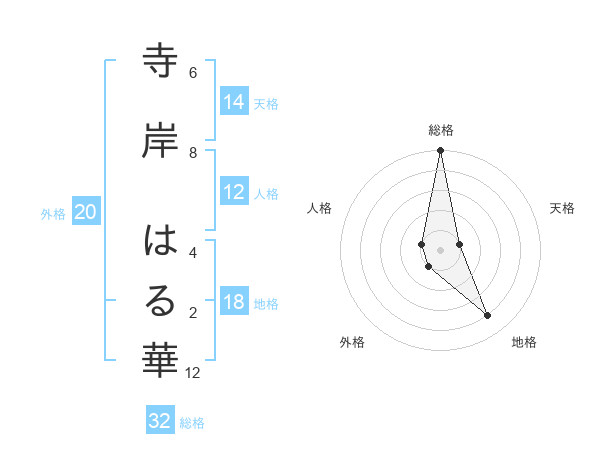 寺岸 はる華さんの総格は32画の5点!