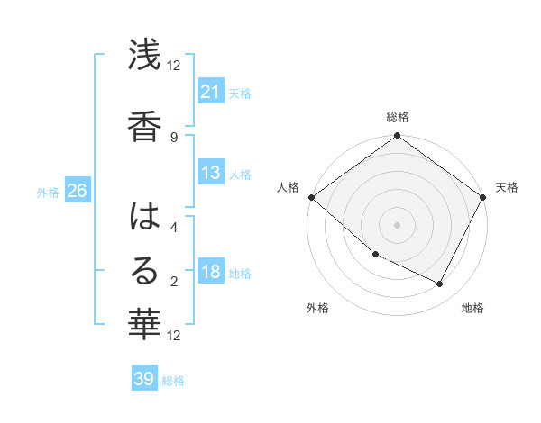 浅香 はる華さんの総格は39画の5点!