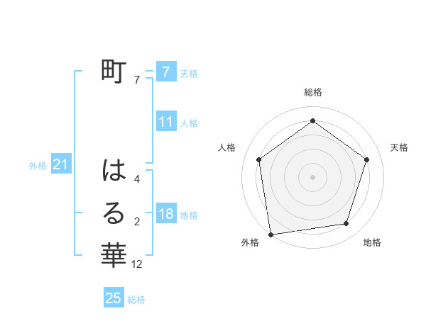 町 はる華さんを姓名の画数から五運を鑑定