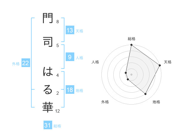 門司 はる華さんを姓名の画数から五運を鑑定