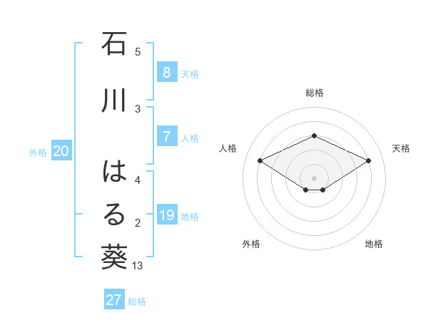 石川 はる葵さんの天格は8画の4点!