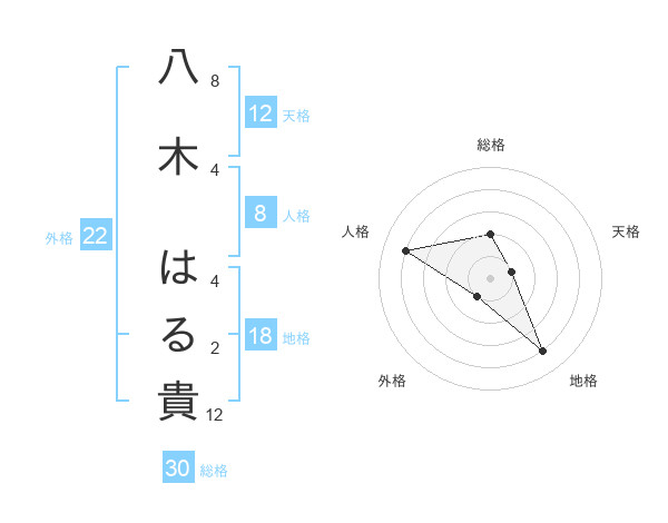 八木 はる貴さんを姓名の画数から五運を鑑定