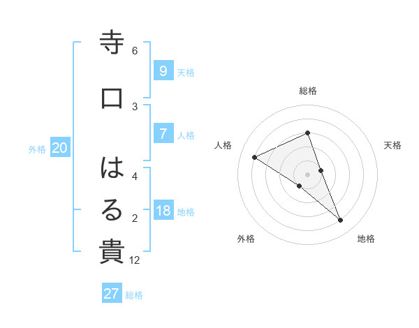 寺口 はる貴さんを姓名の画数から五運を鑑定