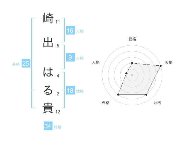 崎出 はる貴さんを姓名の画数から五運を鑑定