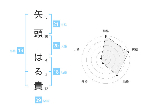 矢頭 はる貴さんの天格は21画の5点!