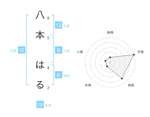 八本 はるさんの天格は13画の5点!