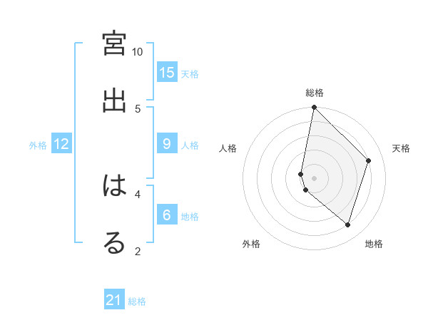 宮出 はるさんの総格は21画の5点!