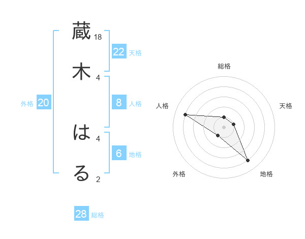 蔵木 はるさんの総格は28画の1点!
