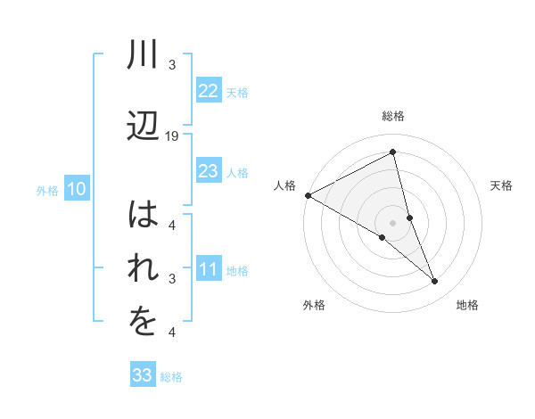 川辺 はれをさんの総格は33画の4点!